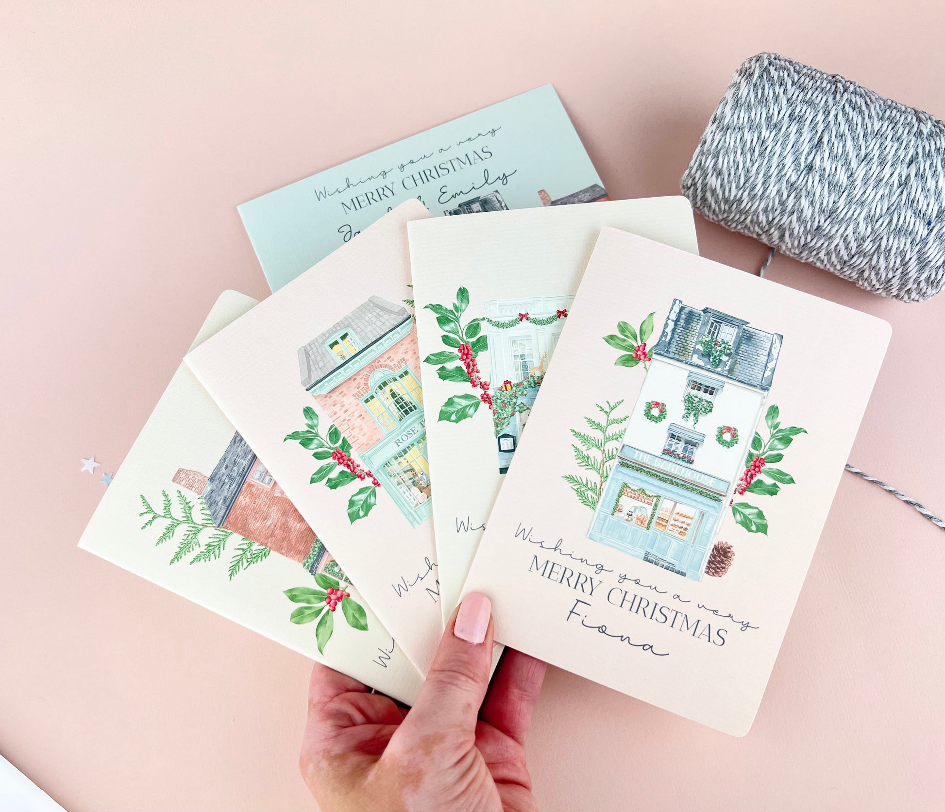 Handmade in our studio, these lovely cards include our original Christmas shop illustrations